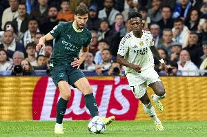 维尼修斯跳步主罚点球被扑,他随后向全场道歉。维尼修斯为错失良机做出了道歉的手势,这种情况实属罕见。维尼修斯高举双臂致歉,随即继续投入比赛,一如整场比赛那般不断冲刺、创造机会。
