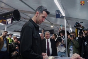 布斯克茨来到现场投票,拉波尔塔与他握手并拥抱