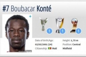 孔特出生于2001年,马里籍,今年25岁,可以胜任前腰、边前卫、中前卫等多个位置。孔特起步于北欧足球青训体系,曾在挪超萨普斯堡、丹麦超北西兰俱乐部接受青训,后曾在挪乙谢夫、葡甲马德拉国民、挪超费德列斯达俱乐部效力。2024年1月,孔特转会至格鲁吉亚哥里迪拉俱乐部并效力至今,累计为球队出战各项赛事81场,贡献14粒进球和8次助攻,并随队获得过格鲁吉亚杯、格鲁吉亚超级杯冠军。国家队层面,孔特曾代表马里U20国家队获得2019年U20非洲杯冠军,当届赛事出场4次;同时在当年的U20世界杯上为马里出场5次,打进2球。