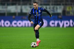 国米352:索默;比塞克、德弗里、巴斯托尼;路易斯·恩里克、弗拉泰西、泽林斯基、苏契奇、迪马尔科;博尼、小图拉姆